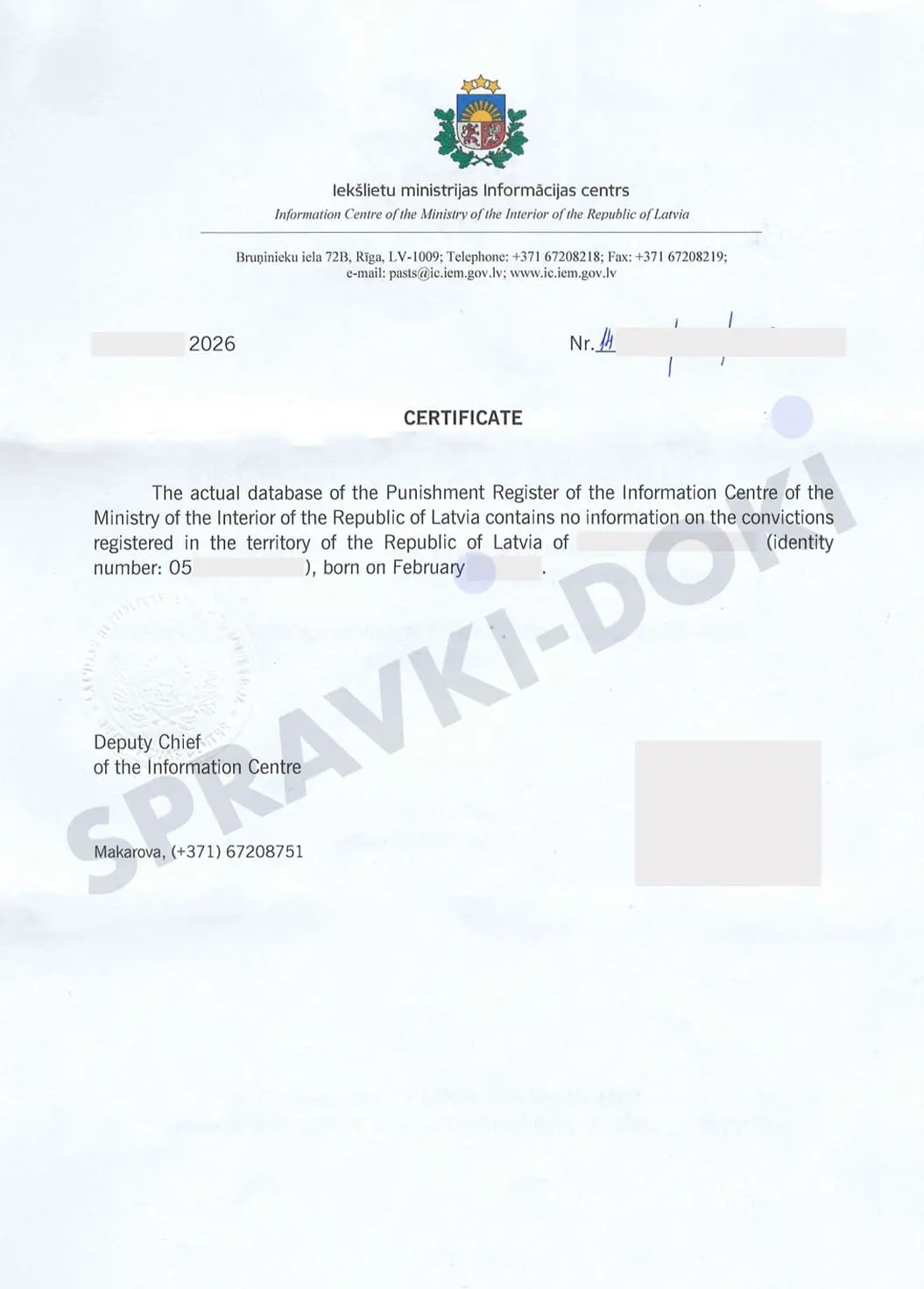 Вы получаете официальный документ из Латвии без бюрократических сложностей, с возможностью использования за рубежом в миграционных, трудовых и юридических целях.