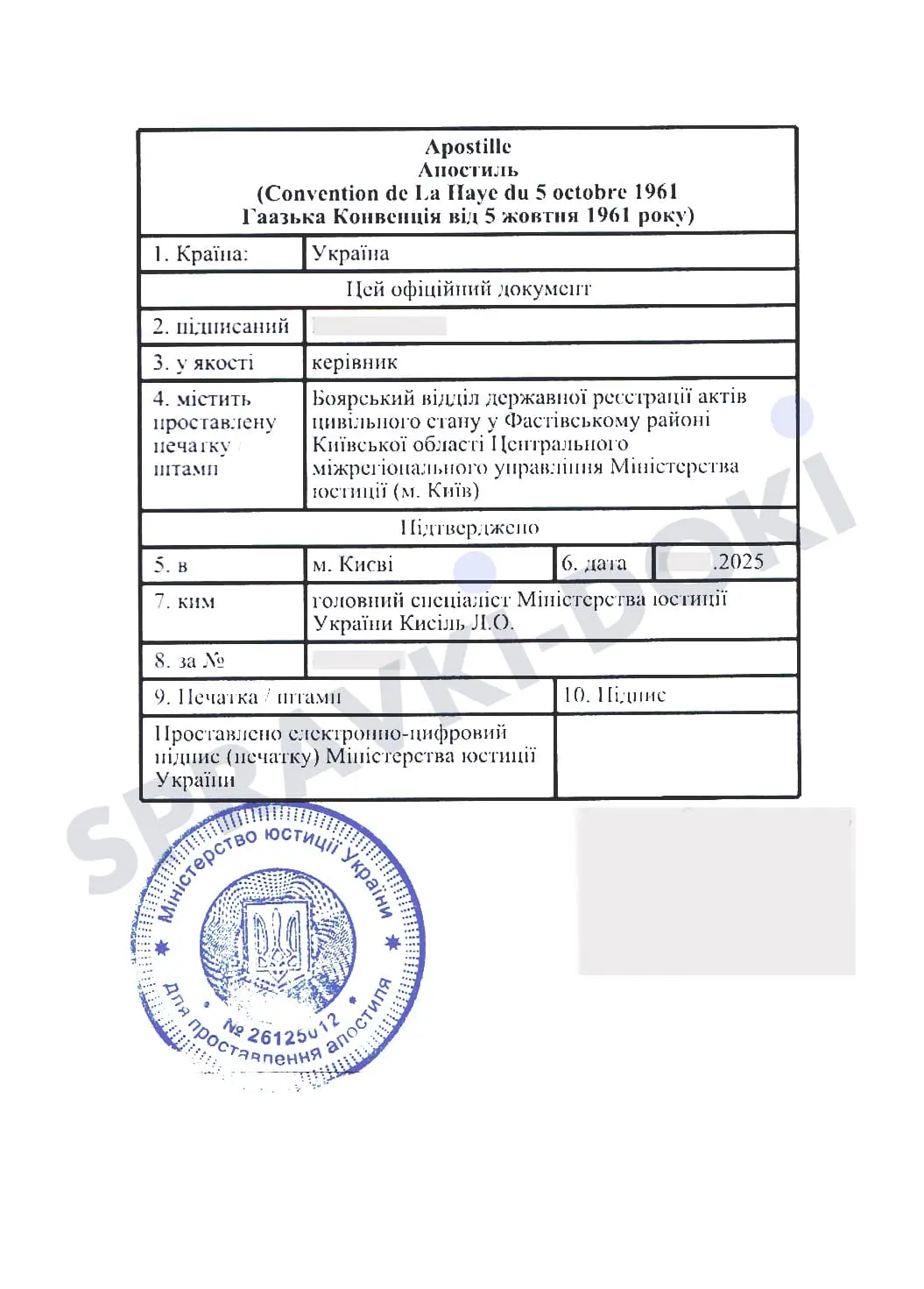 Мы организуем получение повторного свидетельства официальным путём — через ЗАГСы и уполномоченные учреждения Украины. Вам не нужно лично обращаться в инстанции, собирать справки или стоять в очередях: весь процесс мы берём на себя, а готовый документ доставляется курьером в установленный срок.